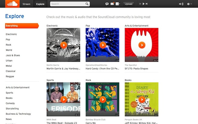 단방향의 전통적인 뮤직 스토어와 달리 SoundCloud는 하나의 거대한 음악 소셜 네트워크 서비스입니다. 신인 아티스트, DJ, 소규모 밴드들의 리믹스 곡이나 신곡을 미리 들어볼 수 있습니다. 물론 모두 무료로 감상할 수 있고 다운로드 역시 가능합니다.