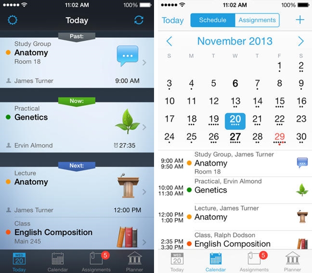 학생들에게 정말 유용한 앱입니다. 특히 대학생들의 추천 앱 목록에선 항상 상위권을 차지하고 있는 녀석입니다. 학기별 시간표를 작성하거나 수업 스케줄, 시간, 숙제 등을 모두 편리하게 관리할 수 있는 학생용 캘린더 앱입니다. 또한 자체적으로 지원하는 GPA 계산기를 이용해 학점 역시 체계적으로 관리할 할 수 있는 장점이 있습니다. 제작사에서 맥 용도 제공하고 있어 iCloud를 통한 맥 - 아이패드 - 아이폰 동기화가 이루어집니다.
