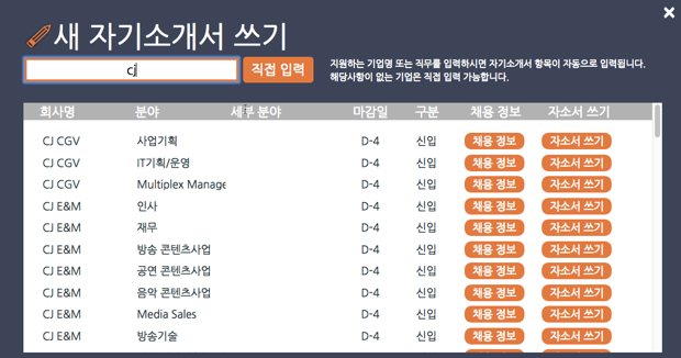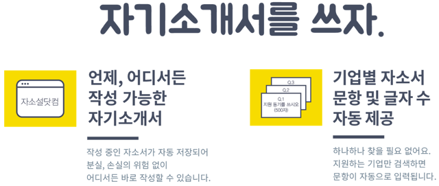 - 기업별 자소서 문항 및 글자 수 제공 : 지원하는 기업만 검색하면 자소서 문항 자동 입력