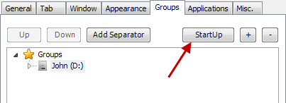 자기가 생성한 그룹을 탐색기 실행 시 항상 시작화면으로 나오게 할 수 있습니다. 마우스오른쪽 > Option > Groups 항목에서 원하는 그룹선택 후 StartUp 버튼을 누르면 됩니다.