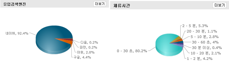 방문자수 50%이상이 체류시간 1분미만..ㅠ_ㅠ 이거이거 깊이 반성 좀 해야겠습니다. 제 블로그에 10초라도 더 머물게 할 수 있는 방법을 강구해봐야겠다는... 뭐 개인적으로 구글 애드센스 수입에 그리 신경을 쓰는 편이 아니지만, 이런 요소들이 간접적으로 애드센스 수입과 연관이 있다고 생각되어집니다. 하루 평균 수입이 0.10~0.30 $.....=_=
